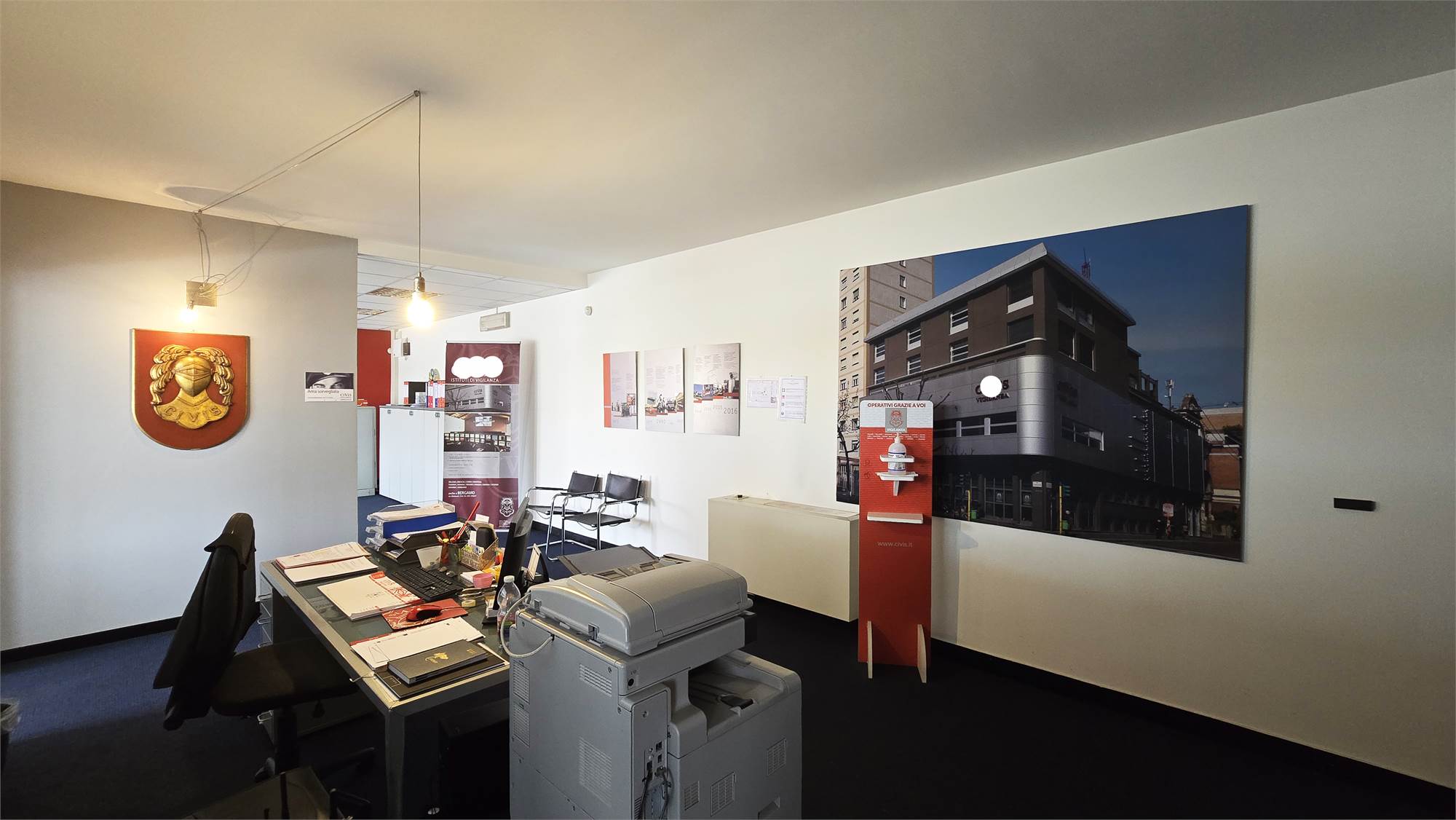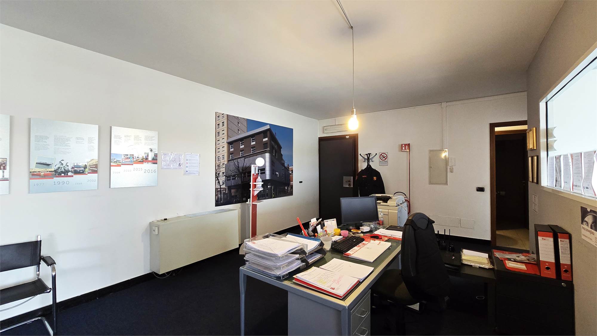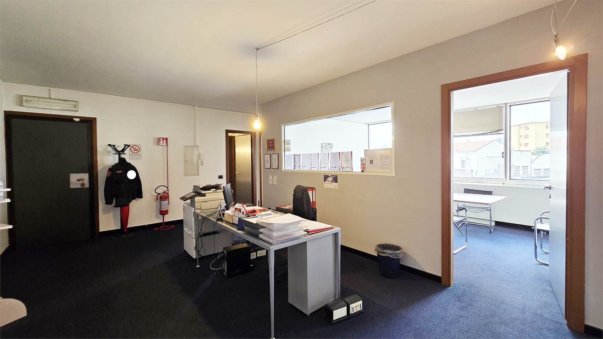 In ottimo stato di conservazione, l'ufficio è esposto sulla via Ghislandi, con una facciata a vetri per tutta la sua lunghezza che garantisce ampia luminosità.