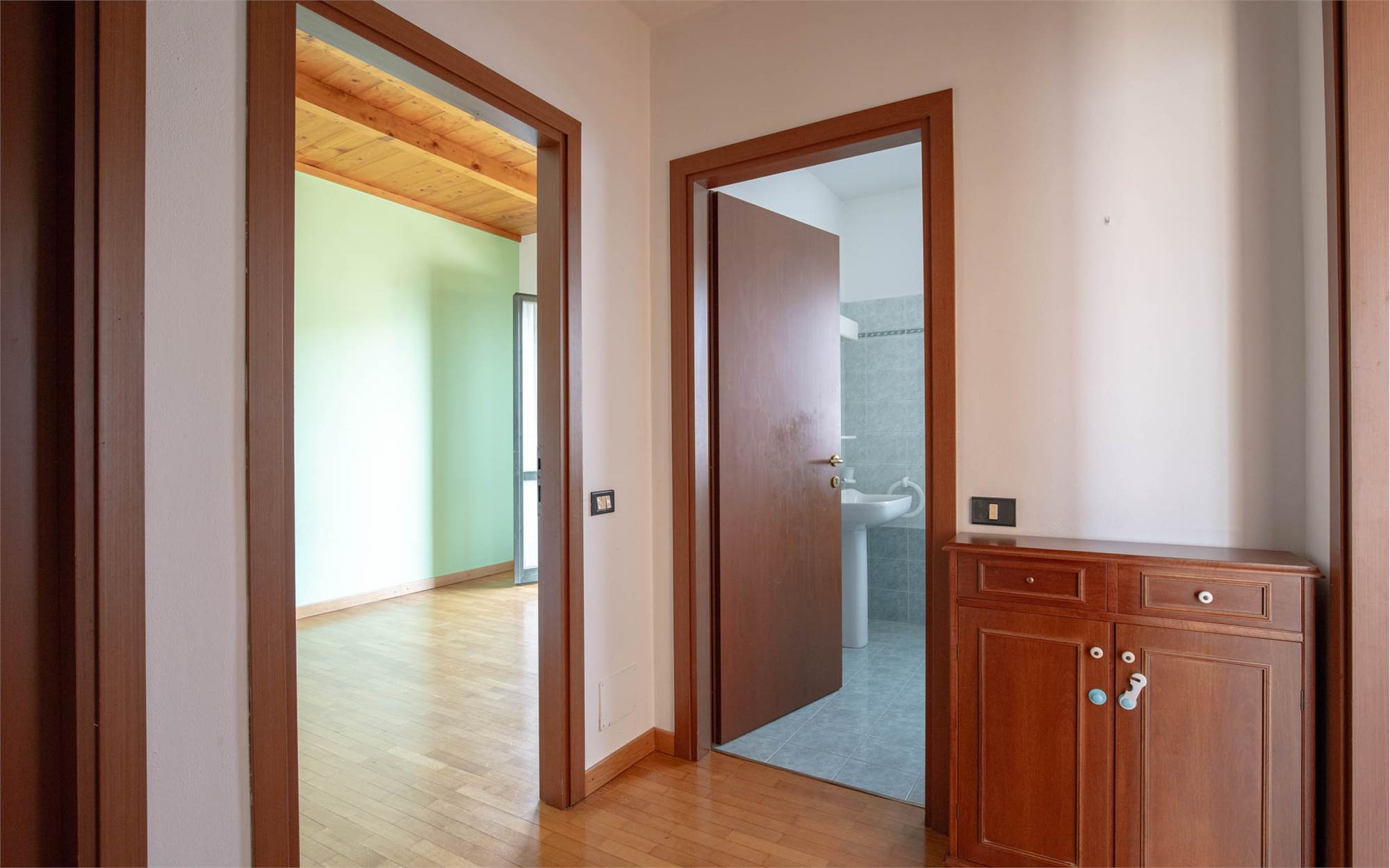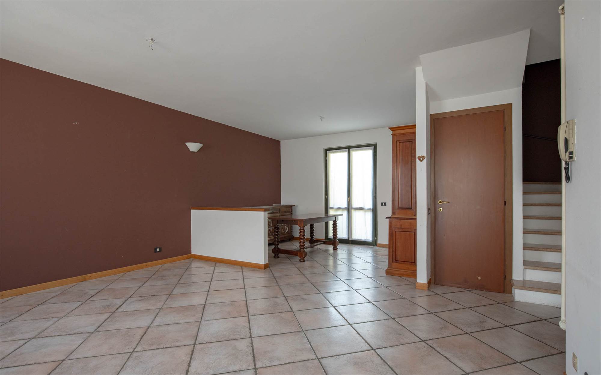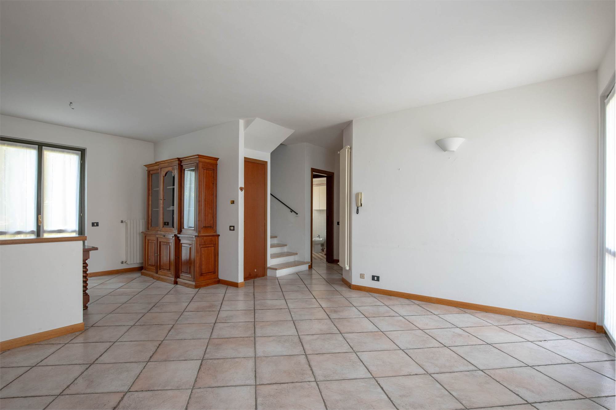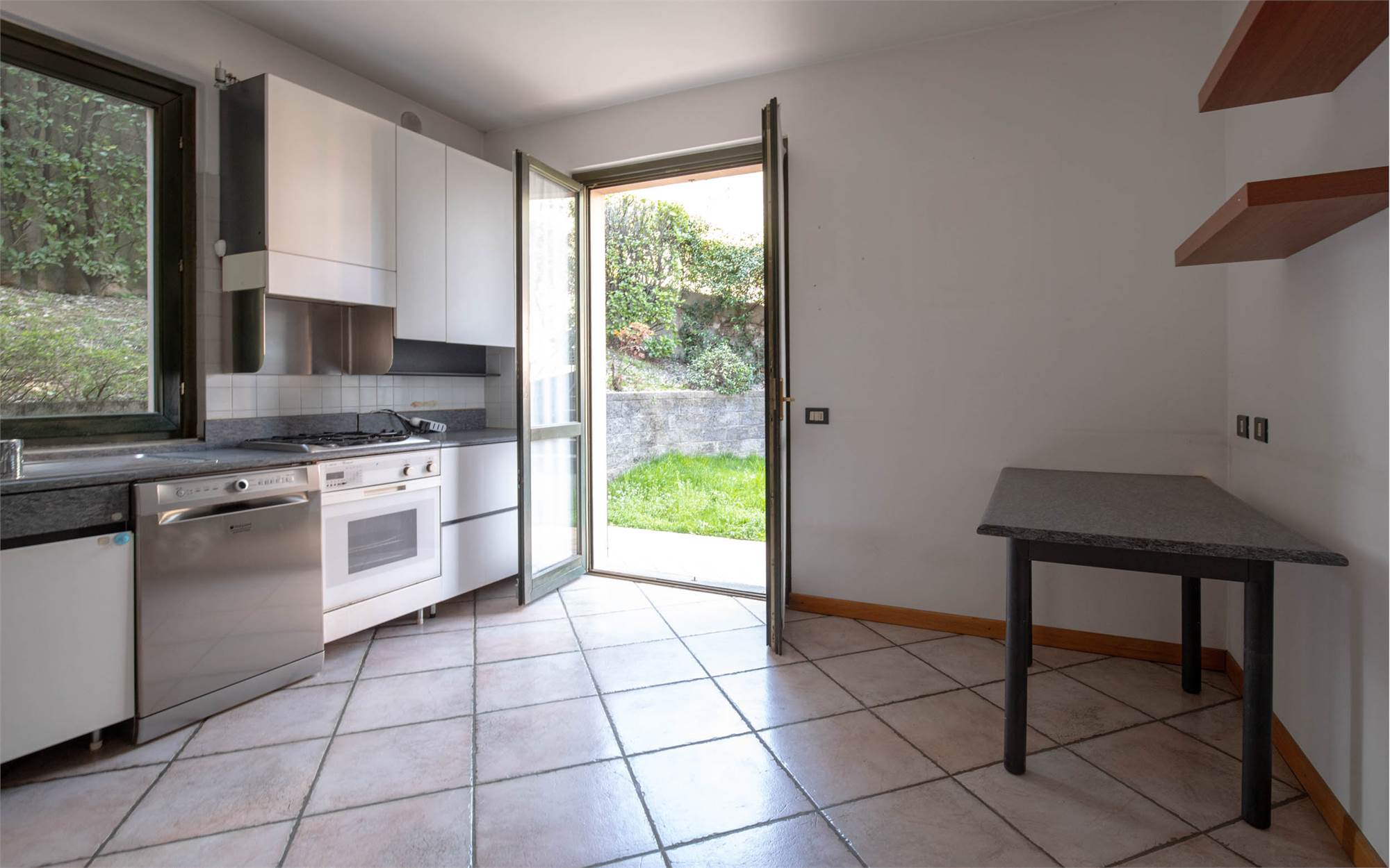• Piano terra: ampia zona giorno con accesso diretto al giardino privato, cucina separata, antibagno e bagno.