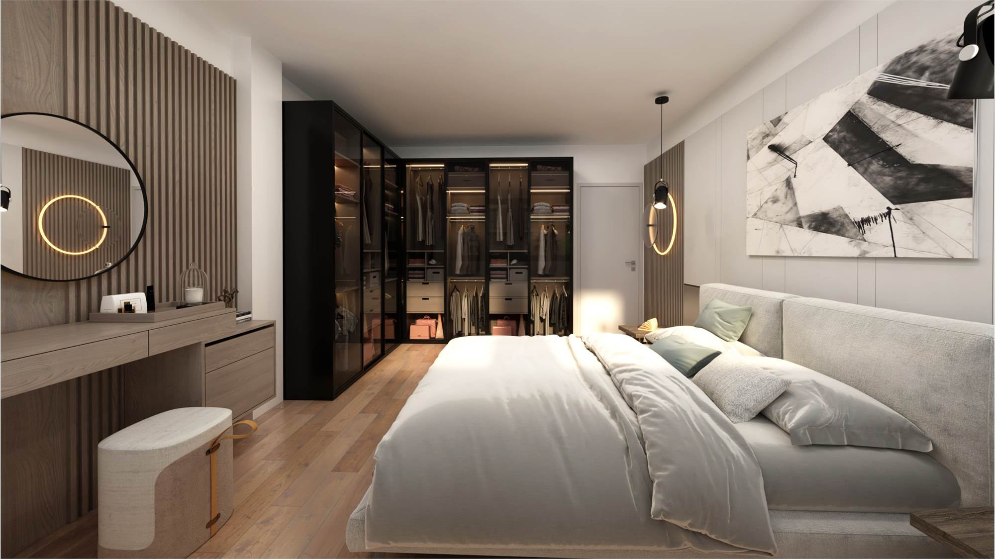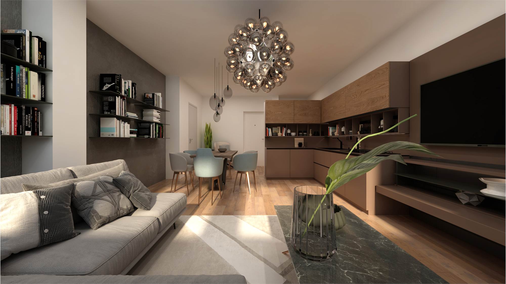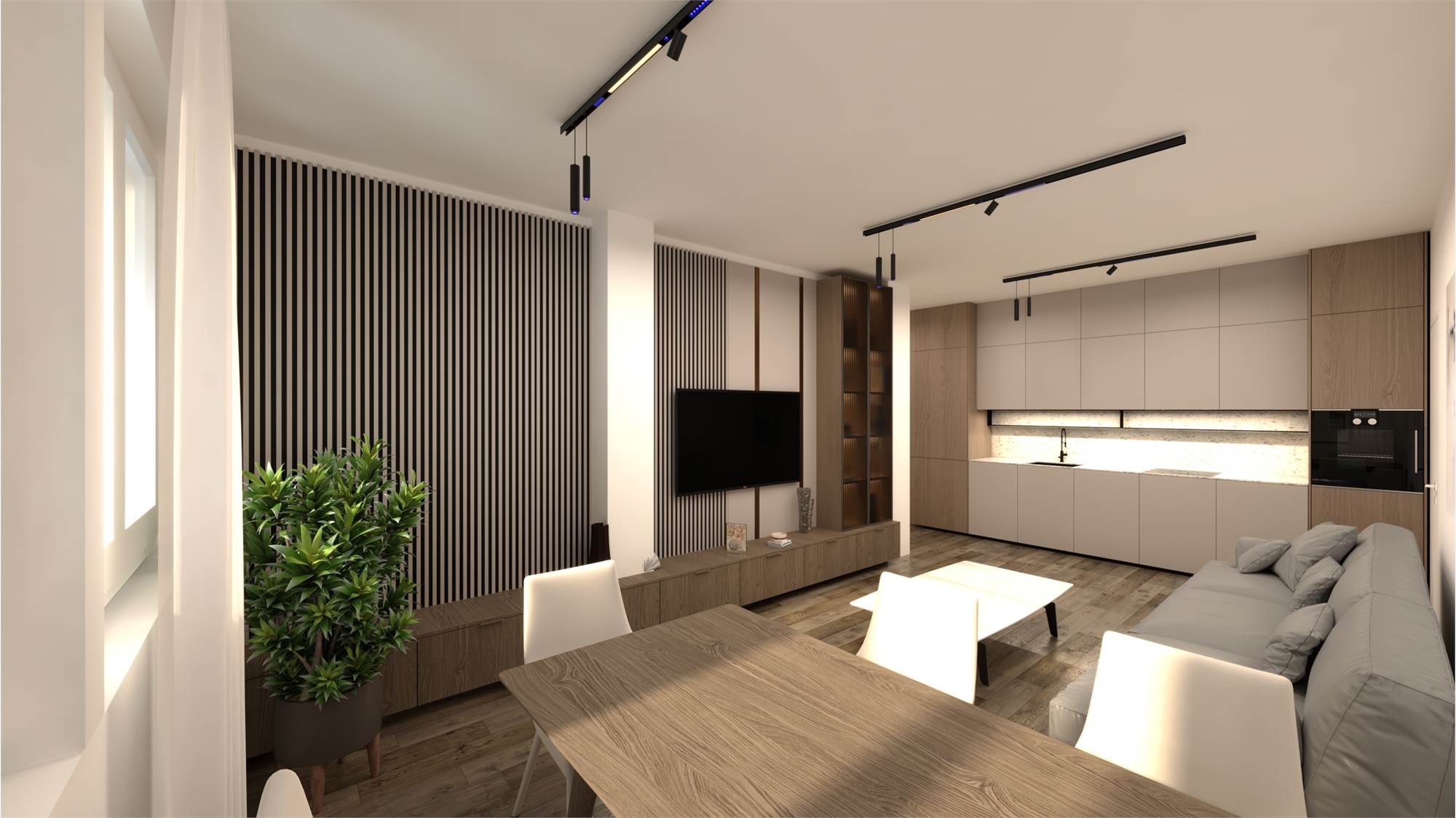 Tapparelle elettriche, impianto VMC, impianto raffrescamento, pavimentazione in SPC di ultima generazione effetto parquet.